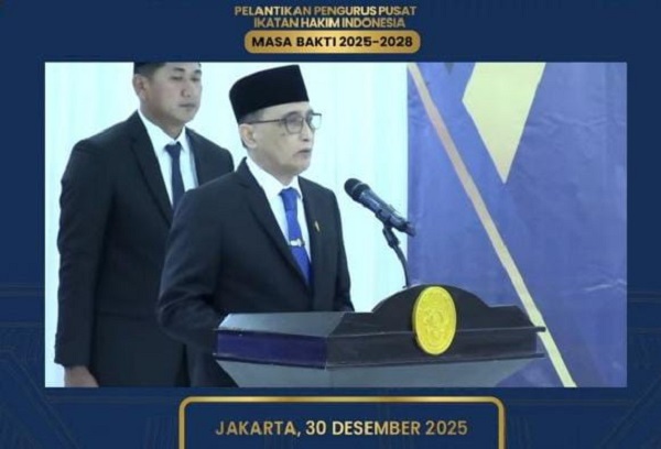Jakarta – Ketua Mahkamah Agung (MA) Republik Indonesia, Prof. Dr. H. Sunarto., S.H., M.H., melantik Pengurus Pusat Ikatan Hakim Indonesia (IKAHI) masa bakti 2025-2028 secara virtual, Selasa (30/12/2025).