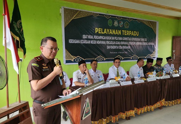 Pijarjakarta.info, Mempawah – Wakil Kepala Kejaksaan Tinggi (Wakajati) Kalimantan Barat (Kalbar) Erich Folanda, S.H., M.Hum yang didampingi Asisten Perdata dan Tata Usaha Negara (Asdatun) Faisal Banu, S.H., M.H dan Kepala Kejaksaan Negeri (Kajari) Mempawah Dr. Samsuri, S.H., M.H., menghadiri pelaksanaan Program Isbat Nikah, penerbitan Buku Nikah, penerbitan Kartu Keluarga (KK), serta Kartu Identitas Anak (KIA).